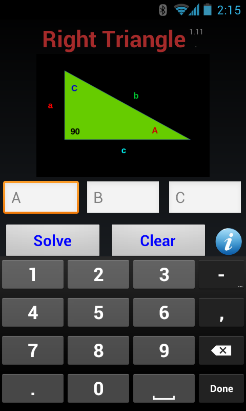 App di base senza pubblicità per calcolare lati, angoli di un triangolo ad angolo retto