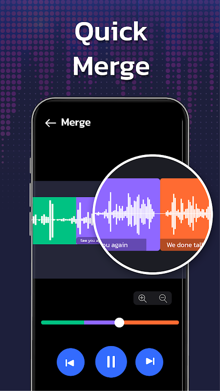 La nostra app Audio Editor offre una varietà di potenti funzionalità per migliorare i tuoi file audio. Con il rifinitore audio e il taglierino mp3, puoi tagliare facilmente la musica e modificarla con precisione. L'editor dei brani ti consente di regolare il volume, aggiungere effetti di dissolvenza in entrata e in uscita e applicare vari filtri audio come eco, riverbero e distorsione.
