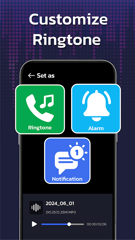 - Imposta come suoneria, sveglia, notifica.