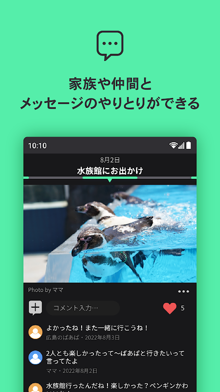 ◆ Puoi aggiungere commenti a foto e video e scambiare messaggi con familiari e amici.