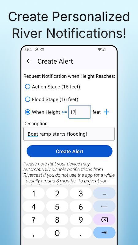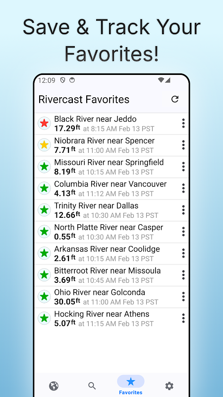 • Avvisi di notifiche push personalizzate quando un fiume raggiunge il livello desiderato (funzionalità premium)