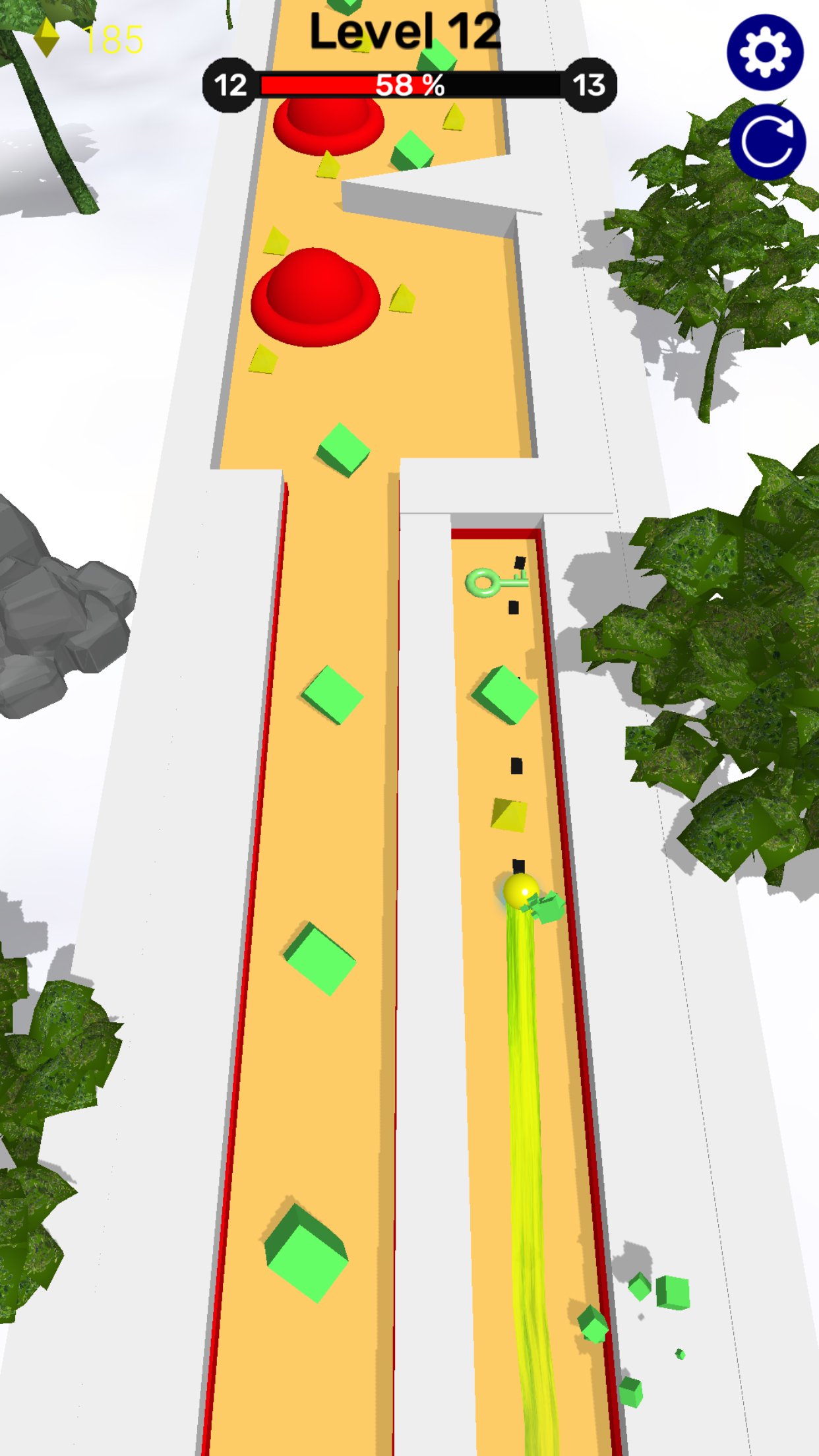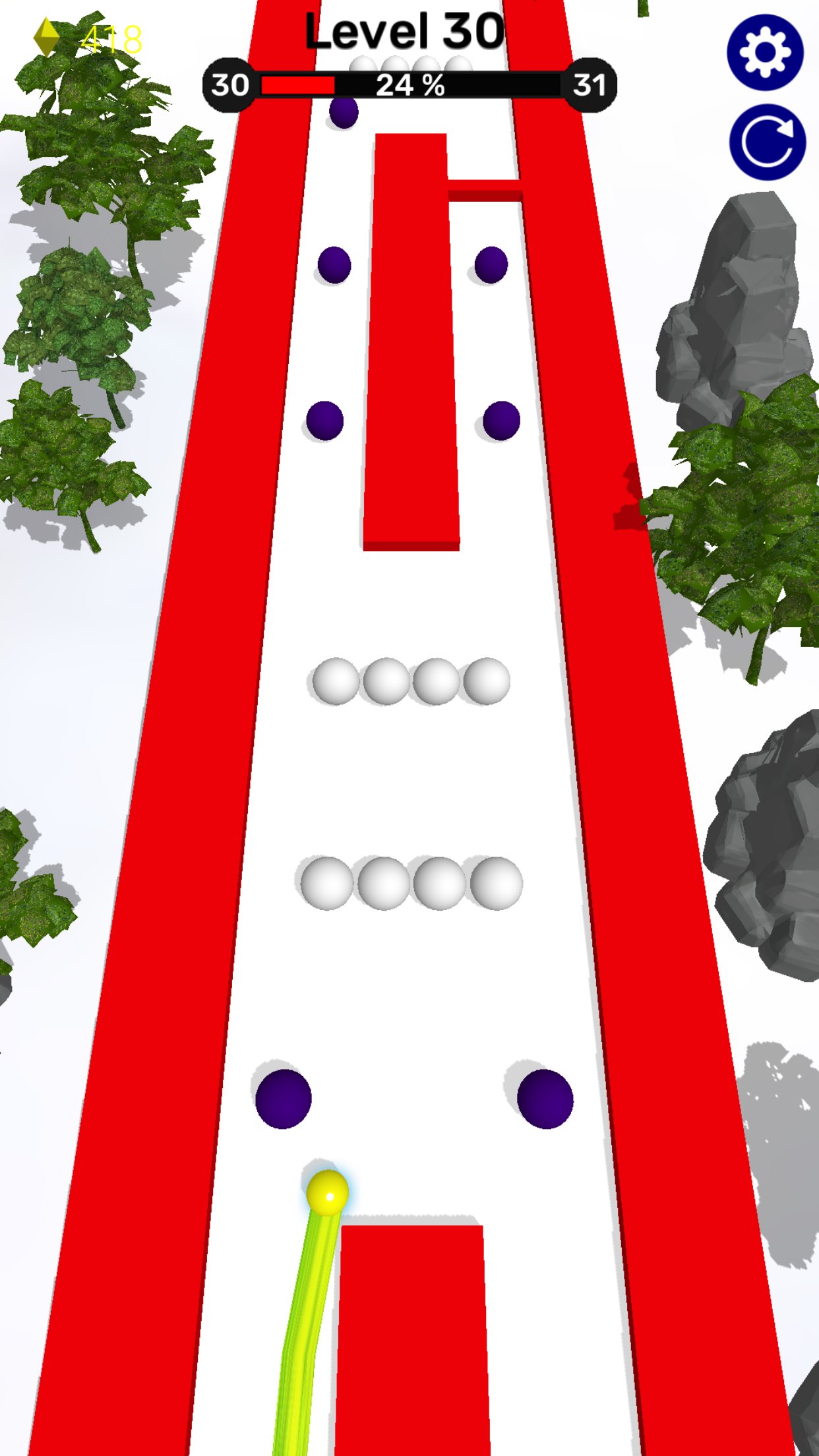 Road Drawing 3D è un avvincente tipo di gioco draw-to-move. Per muovere la palla, devi disegnare. Quando rilasci il dito, la palla inizierà a muoversi in base al percorso tracciato. Meccanica di gioco estremamente intuitiva. Fai del tuo meglio per disegnare nella giusta direzione in modo che la palla non sbatta contro ostacoli in movimento, muri, oggetti rotanti, ecc.