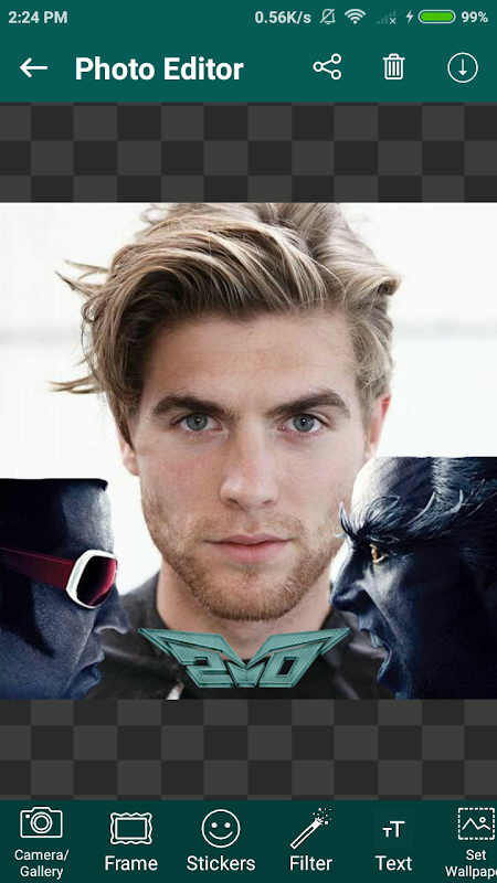 Set any beautiful Robot 2.0 or any other background to your photo from the collections or select any picture from your gallery. Drag it to right position and see it.