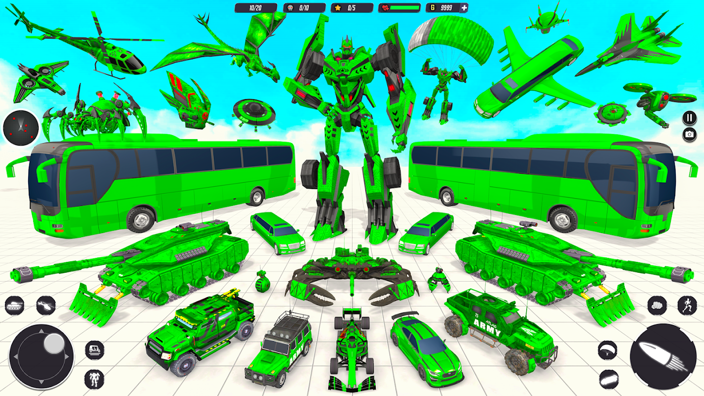 Sei entusiasta di giocare a Robot Car Transform Robot Game o a Flying Car Wala Game? Prova un robot da bici che trasforma il gioco del robot. Questo gioco Car wala e gadi wala ha tutti gli aspetti del gioco robot wali 3d con giochi di robot sparatutto. In questo gioco robot wala di trasformazione robotica, i giochi di auto hanno più robot per combattere e trasformarsi con robot mech. Futuristici giochi di tiro con robot in futuristiche guerre di trasformazione robotica giocano come eroe robotico nei giochi di robot per bici. I giochi di trasformazione di robot per bici e il robot del bus verde sono il mondo del gioco di trasformazione dell'auto dei robot da combattimento nell'arena del robot. Preparati a goderti la lotta futuristica del robot nella bici del robot mostrando le tue armi in robot titani con poteri di trasformazione e trasformando le abilità di guida dei robot.