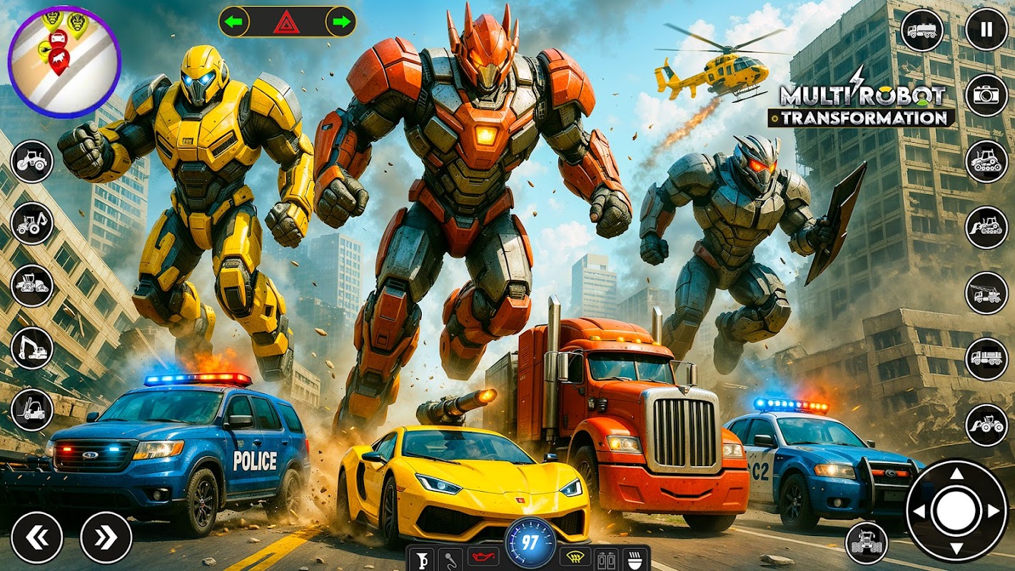 La trasformazione multi robot è la tua destinazione odierna in quanto soddisfa le esigenze del mondo moderno in modo realistico in Worlds of Robot e il giocatore ha molto da imparare da questa avventura di tiro con robot Car Transform. Il gioco robot gangster ha delle eccezioni mentre definisci strategie e conquisti sparando a pericolosi terroristi del gioco di combattimento robotico. Assumi il ruolo nei giochi di trasformazione robot Car Transform trasformando il tuo robot in camion per ripulire il volto della tua città dagli agenti anti-pace in Robot Transform dei giochi sparatutto con trasformazione di auto robotiche. Questa piattaforma ha una profonda efficacia per te poiché ti mette in contatto dal vivo con le tariffe di guerra naturali dei giochi robot Car Transform di azione e avventura.