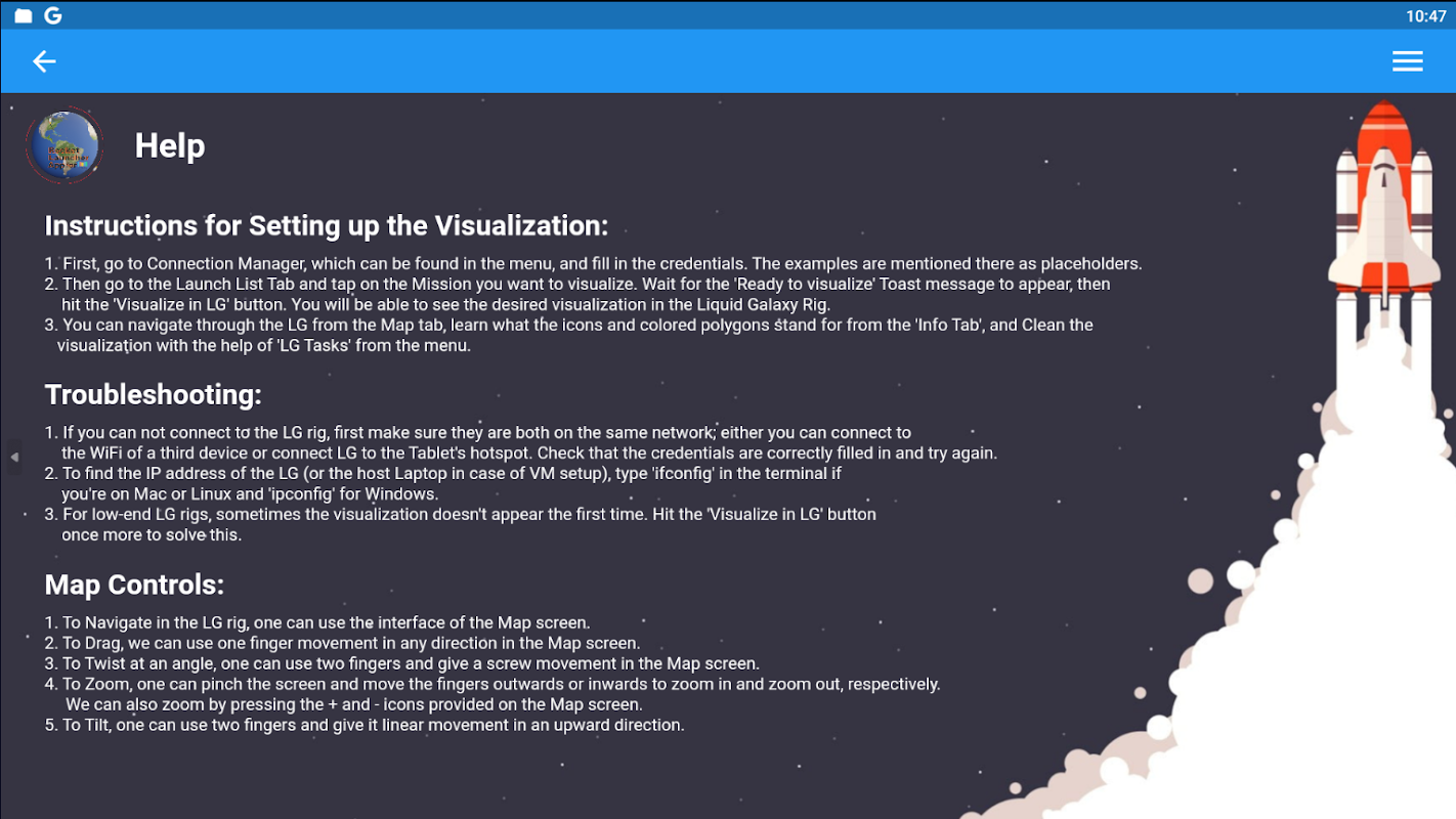 Lo sviluppo di questa applicazione rappresenta un traguardo significativo raggiunto nell'ambito del progetto Google Summer of Code 2023, un'iniziativa collaborativa con la stimata organizzazione Liquid Galaxy. Adottando il framework Flutter, l'applicazione integra perfettamente un'interfaccia utente moderna e multipiattaforma.