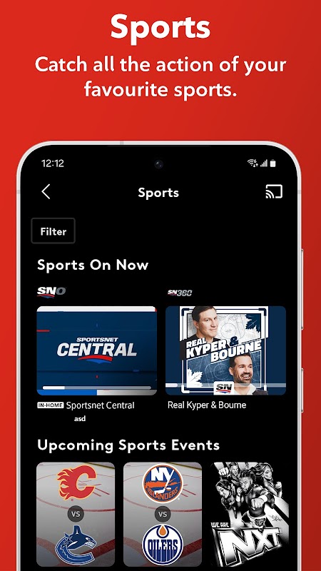 GUARDA i canali TV in diretta in streaming ovunque ti trovi da qualsiasi connessione Wi-Fi o cellulare disponibile in Canada, filtrando per "Disponibile fuori casa"
