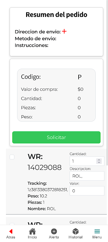 Historial de compras.