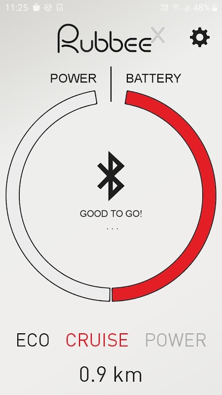 Questa applicazione consente di monitorare la velocità, la potenza e il livello della batteria di Rubbee X.