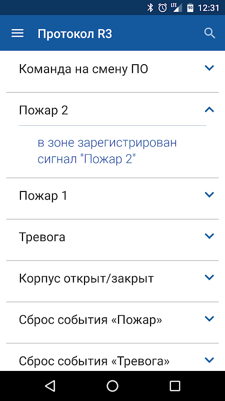 • Список всех сообщений приемно-контрольных приборов с расшифровкой.