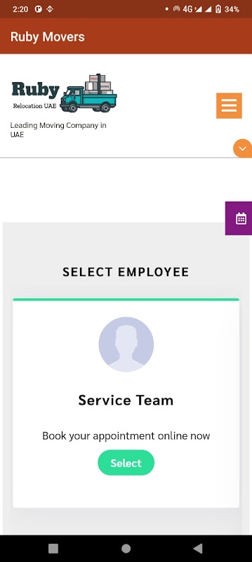 Prenotazione online dell'app Ruby Relocation per imballaggio, spedizione, consegna, disimballaggio