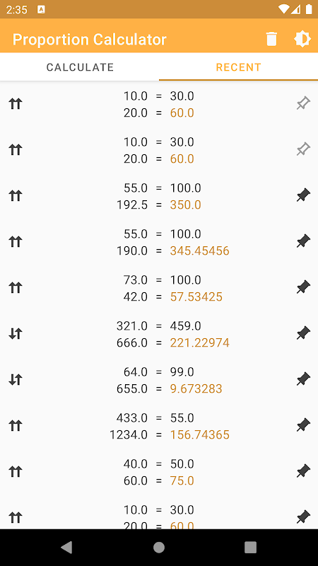Viene conservata una cronologia dei valori calcolati che possono essere gestiti all'interno dell'App.