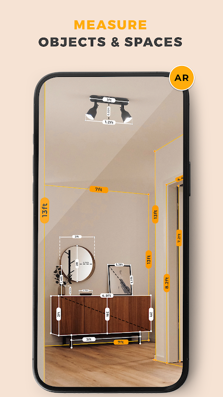 AR Ruler - Tape Measure App offre un metro a nastro digitale gratuito. Misura distanza, altezza, lunghezza, larghezza, angolo e altro eseguendo la scansione con il tuo dispositivo. Ideale per uso interno o esterno in vari ambienti.
