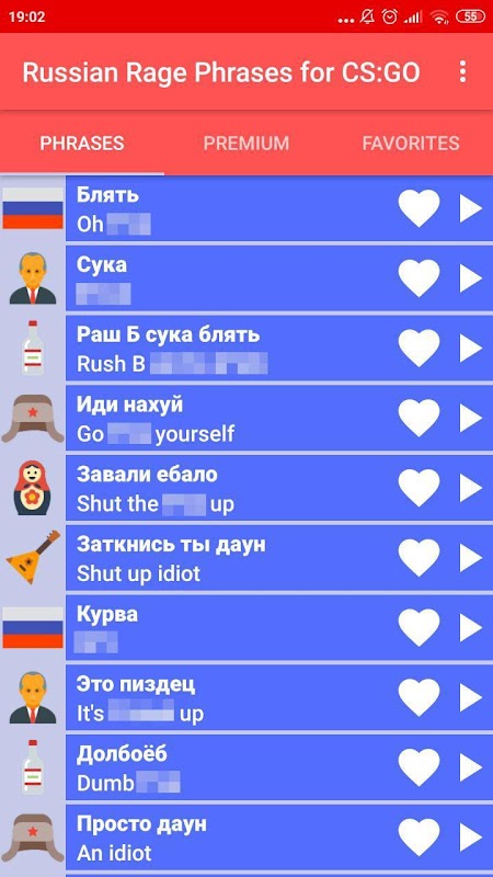 You can use this app not only in CS GO but also in similar games like Counter-Strike 1.6 or any other FPS that Russians like to play. If you do not like ragging and prefer mild phrases, download a similar app with no rage phrases: