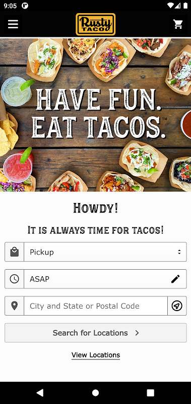 Il pasto più importante della giornata? Tacos, ovviamente - e ora puoi ordinare i tuoi preferiti di Rusty Taco quando vuoi, ovunque tu sia. Trova la posizione più vicina e sfoglia anche il menu! Sia che tu voglia iniziare la giornata con tacos per la colazione, ordinare a pranzo per l'ufficio o andare a cena, tutto ciò che ti ostacola sono pochi tocchi.