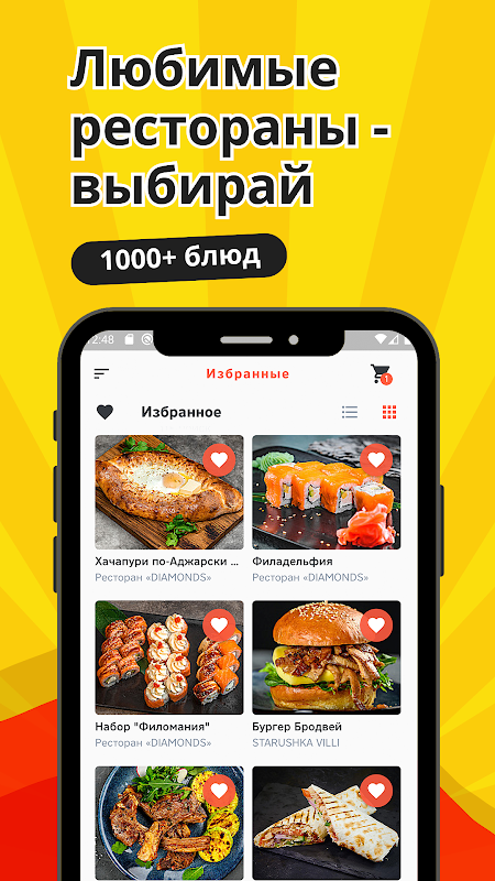 Ordinare su RZN.Eating è facile e piacevole: ci sono categorie (ad esempio "Pranzo", "Italiano", "Per bambini" e persino "Shashlik"), immagini deliziose, ordine veloce.