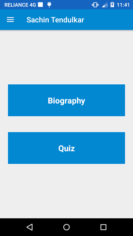 "Sachin Tendulkar(Biography & Quiz)" is very Good Android application for Android Users to know the whole Biography of Master Blaster Sachin Tendulkar also You can play The Quiz that is based on The Biography.