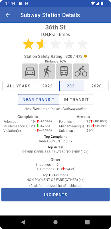 • I dettagli delle stazioni della metropolitana possono essere filtrati anche in base agli incidenti direttamente in transito Vs vicino al transito (ad es. entro 1/10 di miglio dalla stazione della metropolitana)