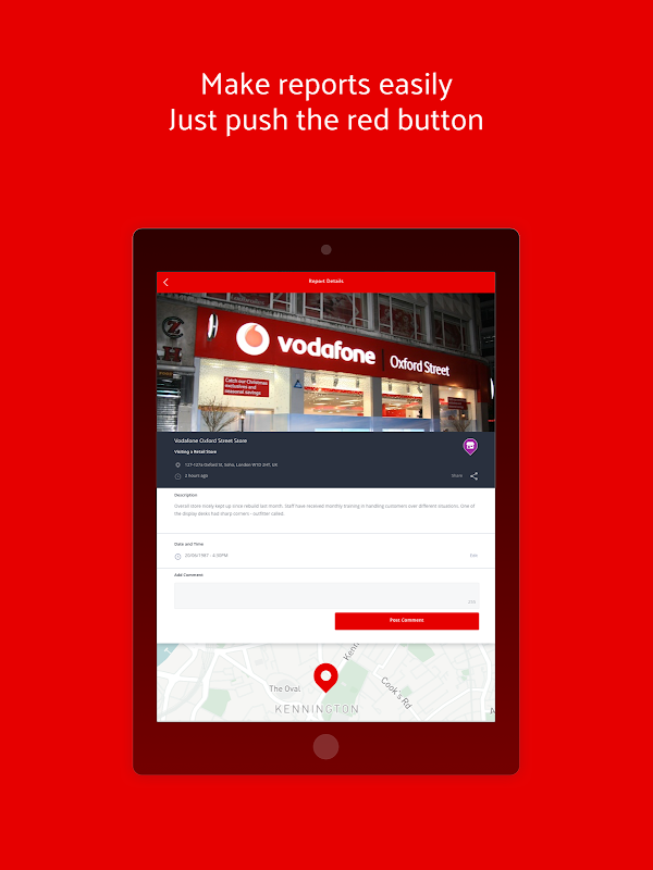 Safety Tours allows you to make quick assessments of locations on your tour. Simply press the red button at the tour location to easily report on your observation.