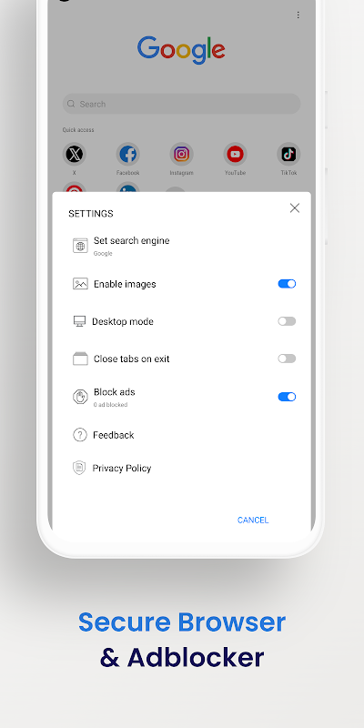 Il browser web privato non traccia la tua posizione, permettendoti di navigare liberamente sul web senza lasciare traccia. Nell'app non sono inclusi annunci o tracker proprietari o di terze parti. Le tue informazioni sono al sicuro da perdite.