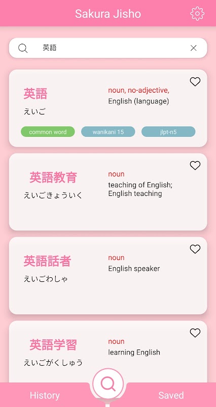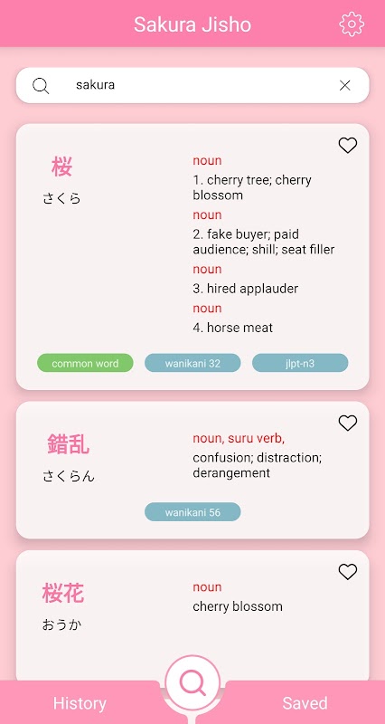 Sakura Jisho è un dizionario giapponese-inglese. Puoi cercare parole in giapponese o inglese.
