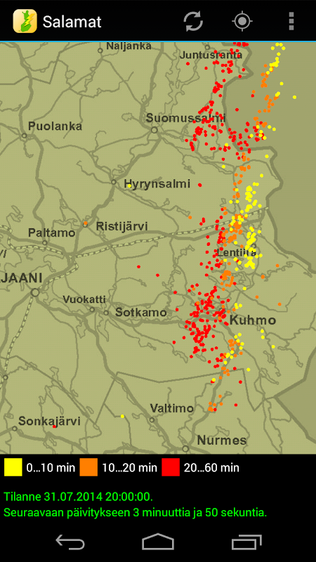 Risultati FMI fulmine localizzatore Finlandia sulla mappa.
