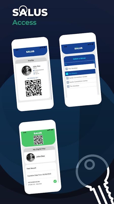 Salus Access è un'applicazione gratuita che consente agli utenti di ottenere l'autorizzazione per accedere a luoghi di raccolta di massa che richiedono test per un determinato agente patogeno prima dell'ingresso. Salus Access ti aiuterà a trovare un sito di test vicino alla sede che desideri visitare e a trasmettere in sicurezza i tuoi risultati all'applicazione Salus Access. Una volta che i risultati sono in una chiave digitale crittografata, verranno generati e visualizzati nell'app che ti consentirà di accedere all'evento che vuoi vedere. Stai al sicuro e goditi lo spettacolo!