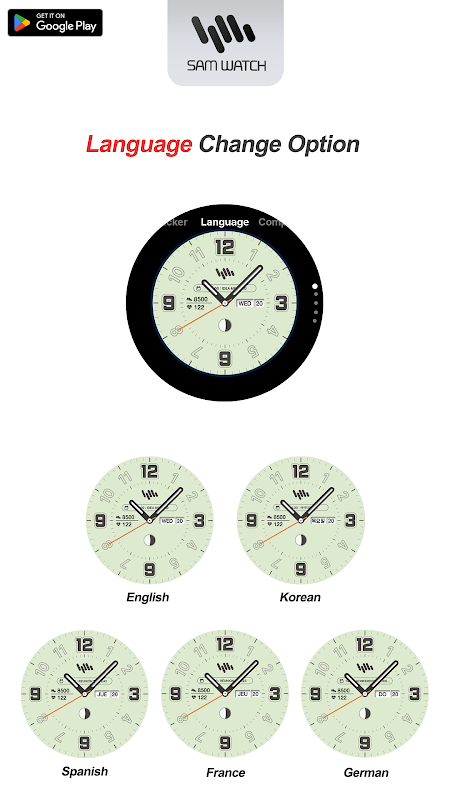 • Puoi identificare le lingue supportate dal nome del marchio SamWatch