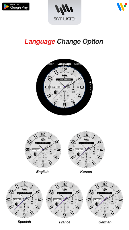 Puoi distinguere le lingue in base al marchio di SamWatch.