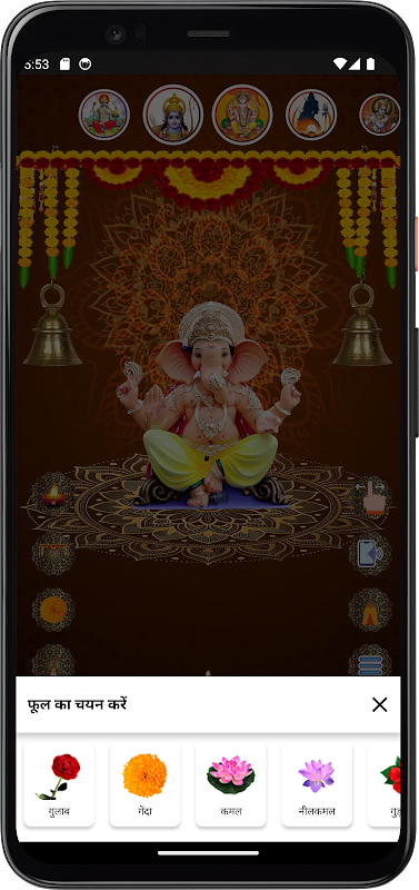 3. Riproduci musica aarti, shankh, banshuri, damru, manjeera, veena da riprodurre in sottofondo.