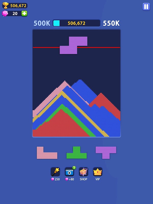 Otterrai 3 blocchi di colori diversi alla volta. Usa le tue abilità per posizionarli e rimuoverli.