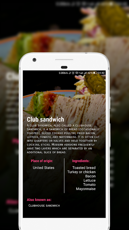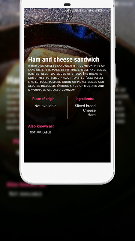 Questa applicazione fornisce all'utente alcuni tipi di panino in tutto il mondo con le loro immagini, nomi, breve descrizione, il luogo di origine, ingredienti ei loro nomi diversi.