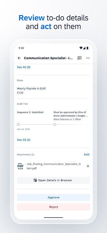 - Tutti i task di approvazione sono disponibili e pronti per essere elaborati nella scheda Attività e nell'app per smartwatch