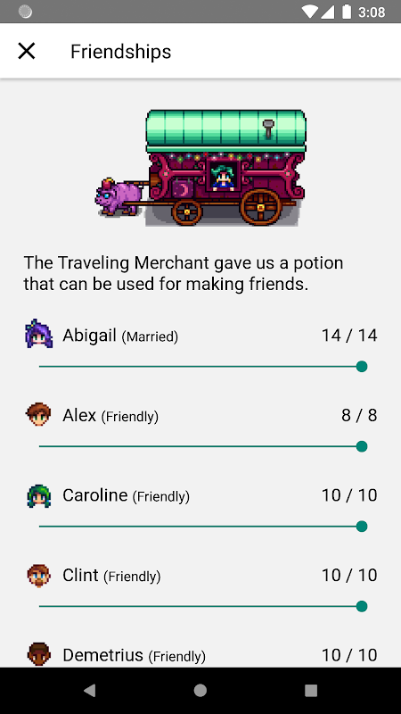 - Modifica i livelli di amicizia, strumento, fortuna, combattimento e abilità