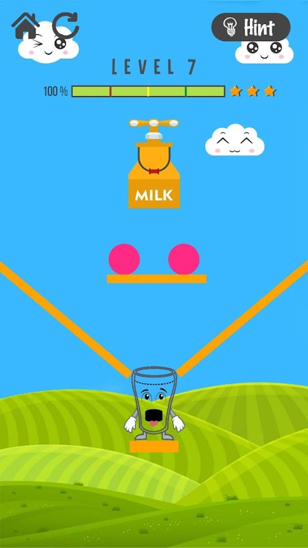 The rules are simple! Let's fill the glass with milk. The level is unique and try to find the best solution. Try to draw the shortest lines, pay attention to your ink, use too much to pass the perfect pass, draw lines and shapes free to move.