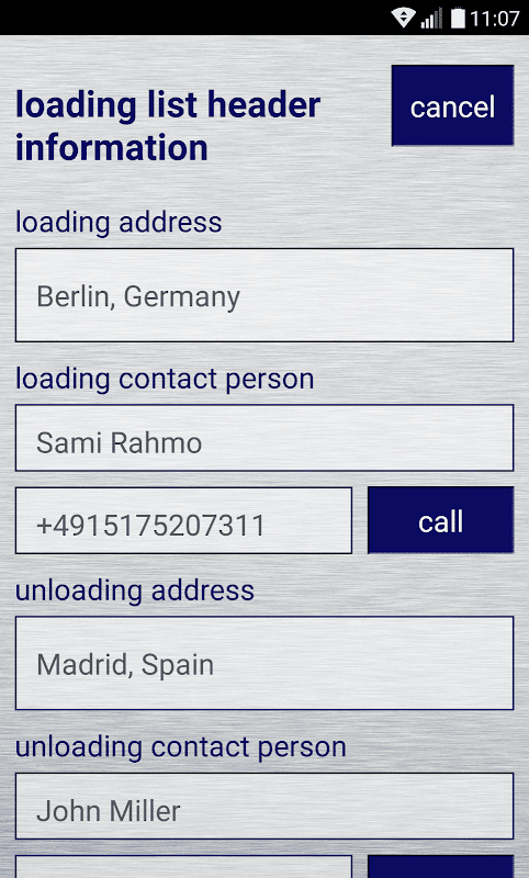 ► Utilizzare la funzione di chiamata per reindirizzare la chiamata al personale registrato responsabile del carico e scarico (tariffe telefoniche standard applicabili in base al provider).