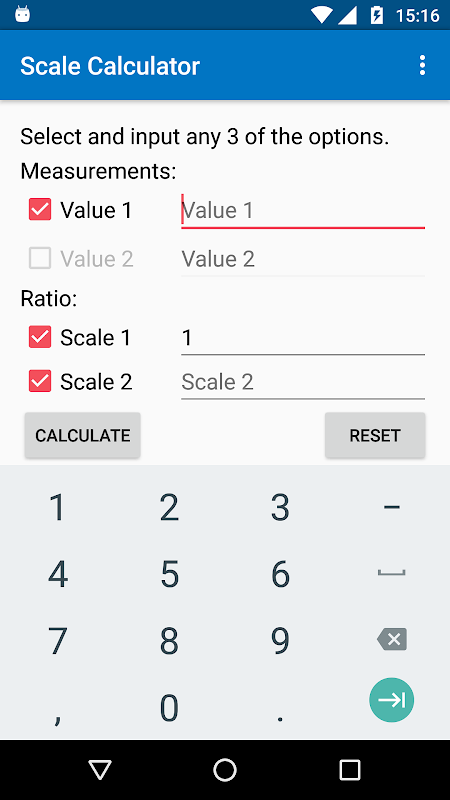 Scale Calculator allows the user to quickly and easily calculate the dimensions and scale/ratio for measurements.