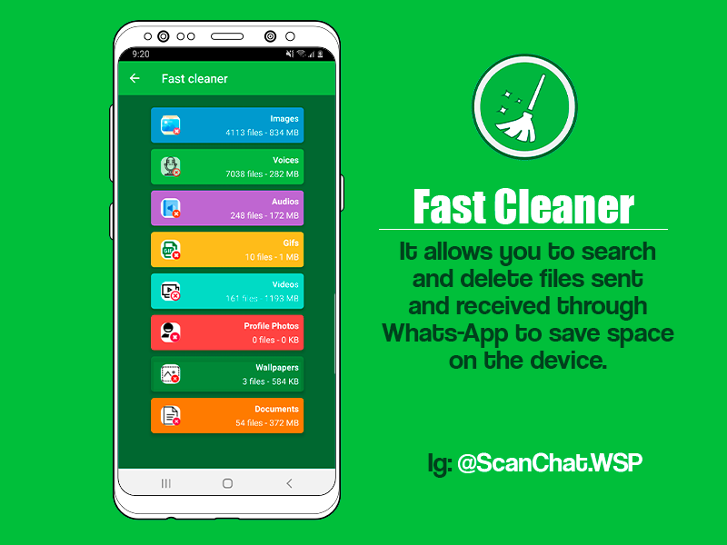 WhatsApp Cleaner offre un'interfaccia facile da usare con un design di alta qualità, molto facile e semplice da usare, ovviamente whatsapp sta potenziando il detergente aumenterà la velocità del tuo telefono e libererà spazio sul telefono pulendo i file spazzatura.