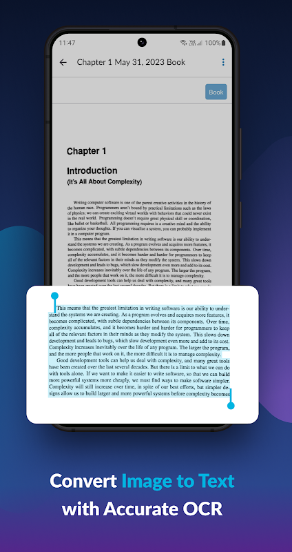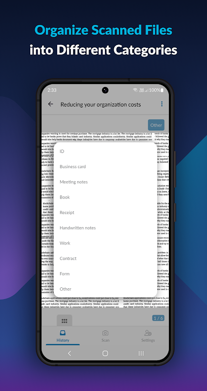 Scan.Plus include l'OCR per l'estrazione rapida del testo, rendendo i documenti scansionati ricercabili e modificabili. Cerca all'interno dei tuoi documenti o copia e modifica il testo per migliorare la tua produttività.