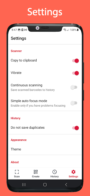 - Questo strumento tiene automaticamente traccia del codice che gli utenti hanno scansionato e gli utenti possono accedervi successivamente in una scheda Cronologia separata sull'app.