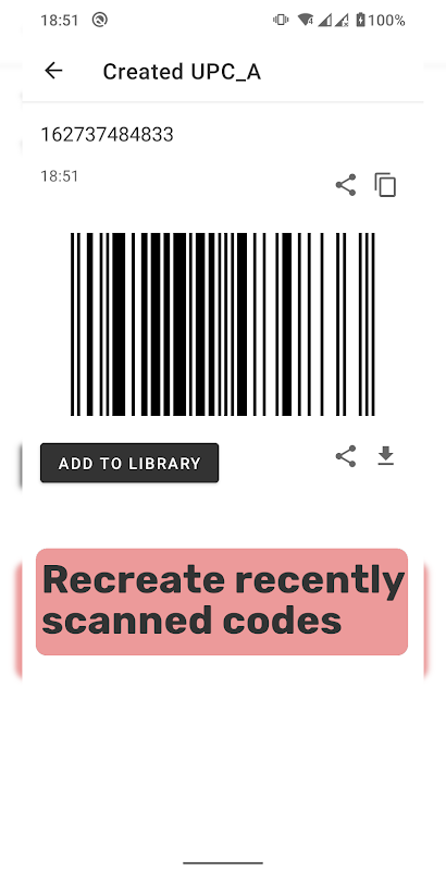 Tutte le scansioni vengono salvate nella libreria locale in cui è possibile ricreare il codice acquisito.