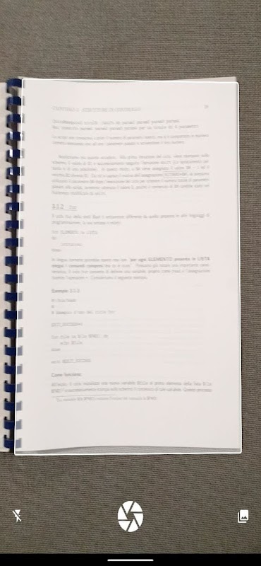 Semplice applicazione per ottenere scansioni di documenti mediante fotocamera