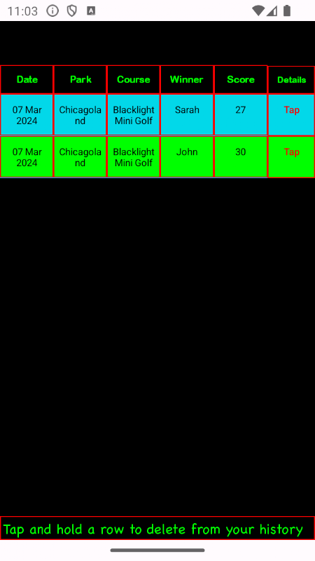 Dopo aver completato il gioco, la tua scorecard verrà salvata nella cronologia per ricordare sempre chi ha vinto il percorso!
