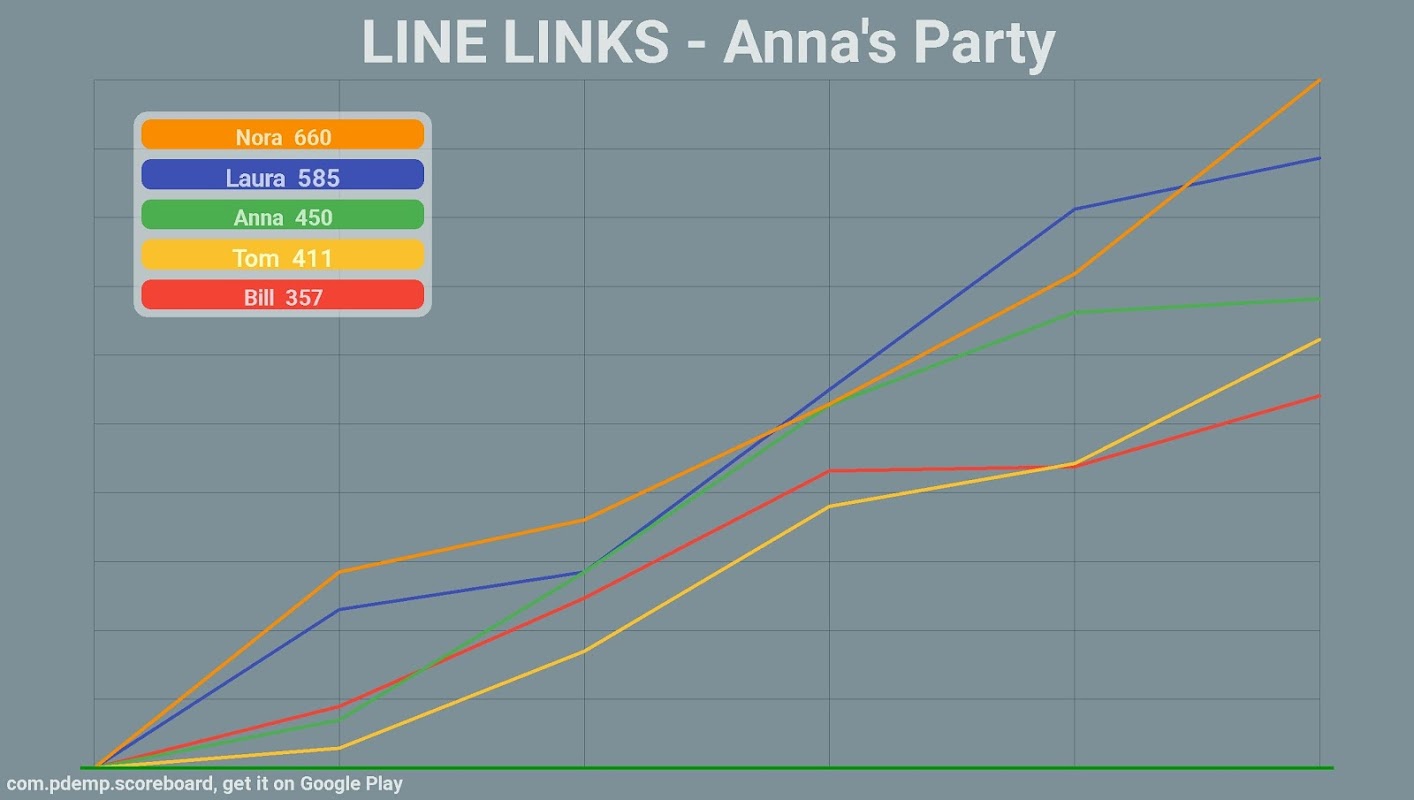 - Elenco: punteggi sono mostrati in forma di lista, con la possibilità di posizionare il leader nella parte superiore dello schermo. punteggi Leader può essere configurato per mostrare se il leader è il giocatore con il più basso o il punteggio più alto.