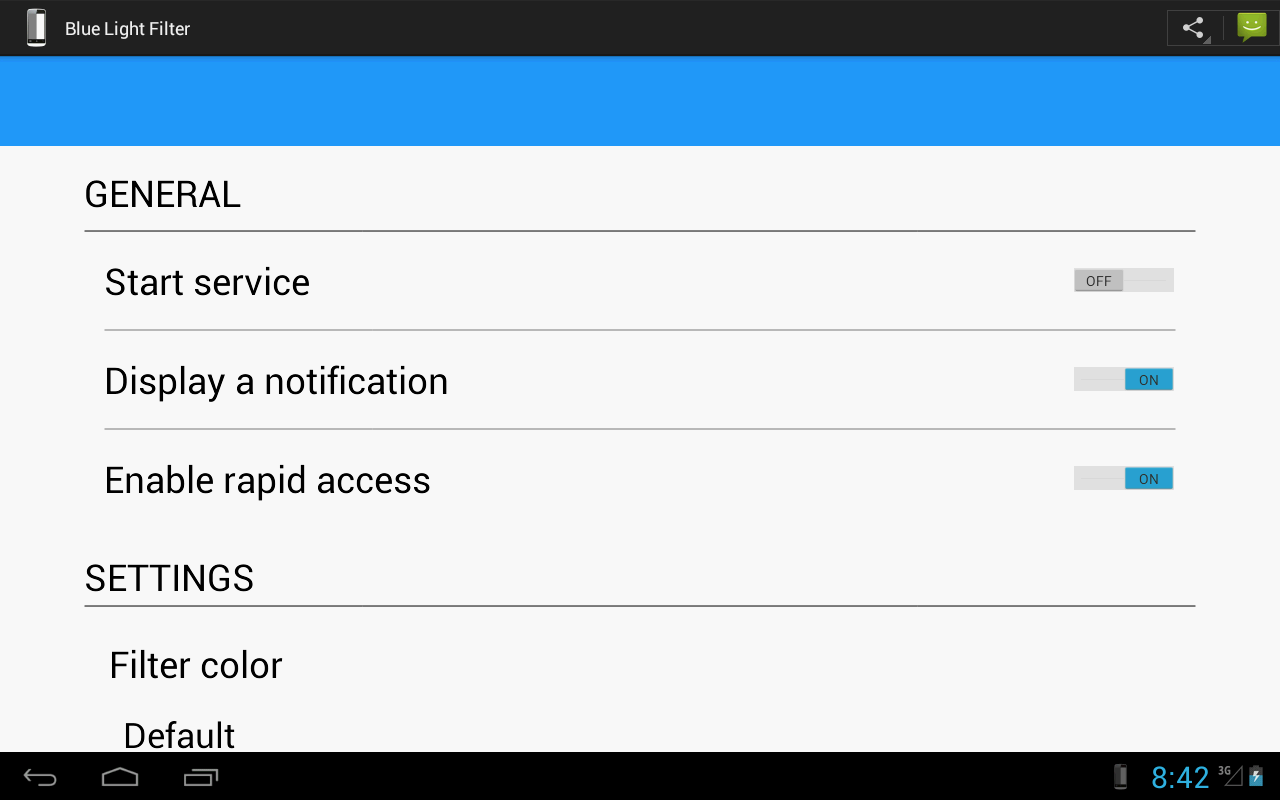 This application reduces the blue light and helps you to avoid insomnia and eye strain caused by blue light. it also gives you a better control over your screen brightness