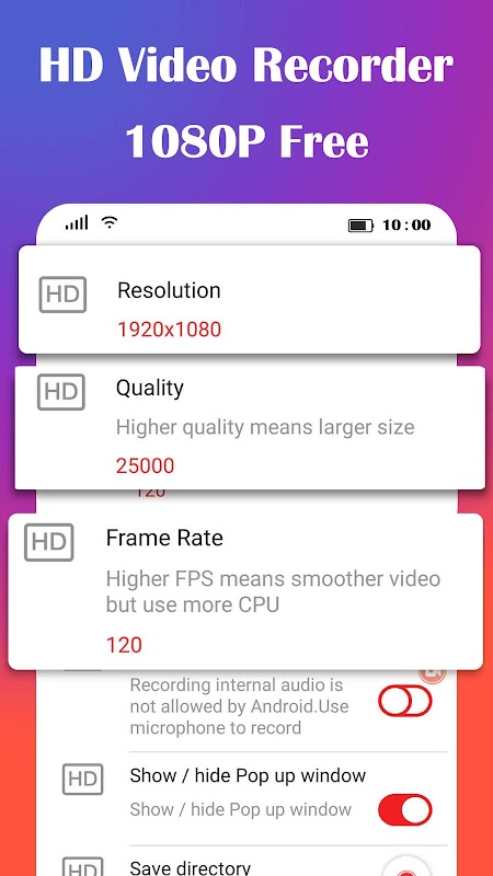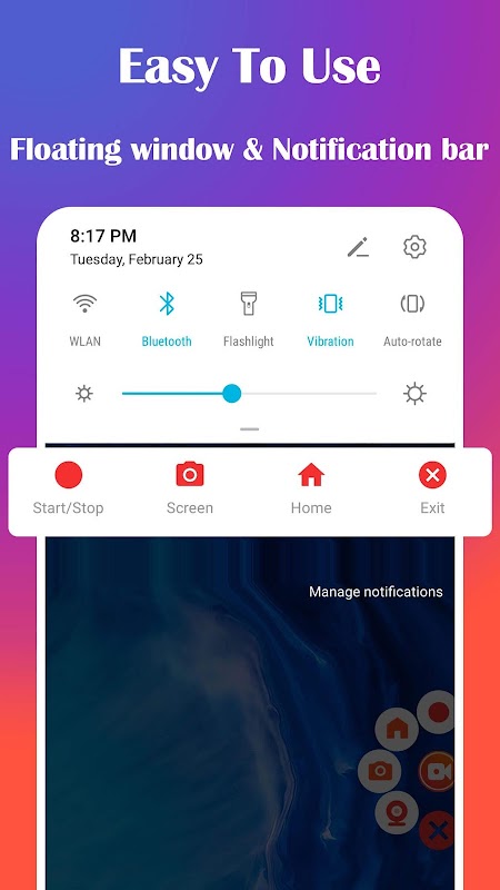 Screen Recorder - Video Recorder è uno strumento di registrazione e acquisizione dello schermo che ti aiuta a catturare video o schermate fluidi e chiari nel modo più semplice. Basta un tocco sulla finestra mobile, per registrare facilmente il gioco, tutorial video HD, videochiamate Inoltre, puoi registrare video che non possono essere scaricati. Quindi non perderai più momenti o spettacoli dal vivo, e importante.