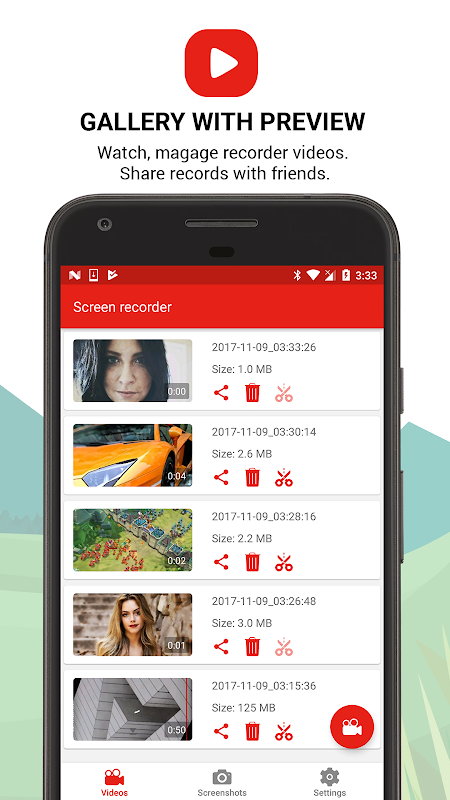 Screen Recorder is best free screen recording app. Record scren in HD Video quality without watermark, timelimit and without root!