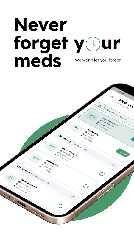 - Promemoria Farmaci Affidabili: Imposta allarmi personalizzati per le pillole e programmi di assunzione. Le nostre notifiche funzionano completamente offline, così riceverai il tuo promemoria anche senza connessione internet.