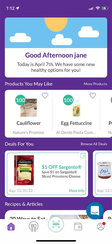• Offerte personalizzate per cibi sani consigliati (è disponibile l'integrazione del programma fedeltà).