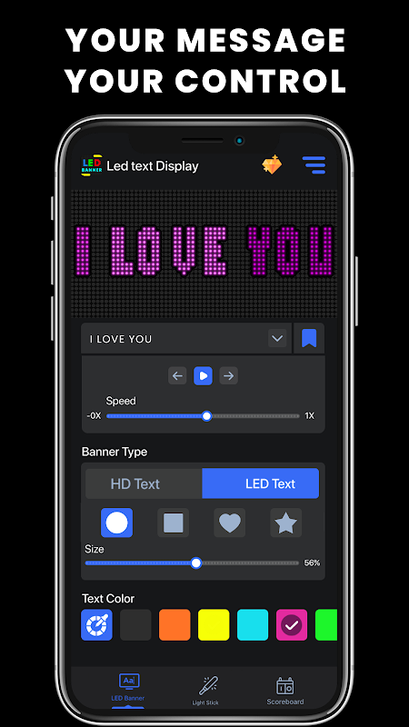 Personalizza i tuoi messaggi con una varietà di caratteri eleganti utilizzando la nostra app di scorrimento LED. Scegli tra diversi stili di testo per rendere il tuo display unico e accattivante.